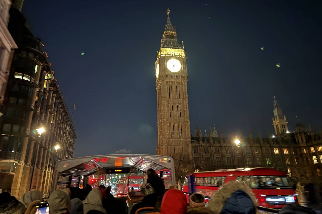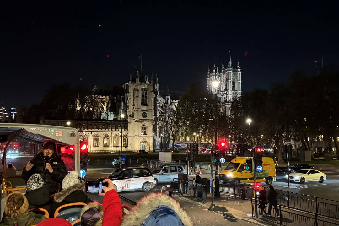 Descubra la belleza de Londres al anochecer con un recorrido nocturno en autobús de 90 minutos por Londres. Admire los lugares emblemáticos iluminados desde un autobús descapotable mientras obtiene una nueva perspectiva de la ciudad. Conoce la rica historia de Londres con la ayuda de un experto guía en directo, o elige escuchar la audioguía multilingüe, disponible en 12 idiomas diferentes y un comentario especial para niños.